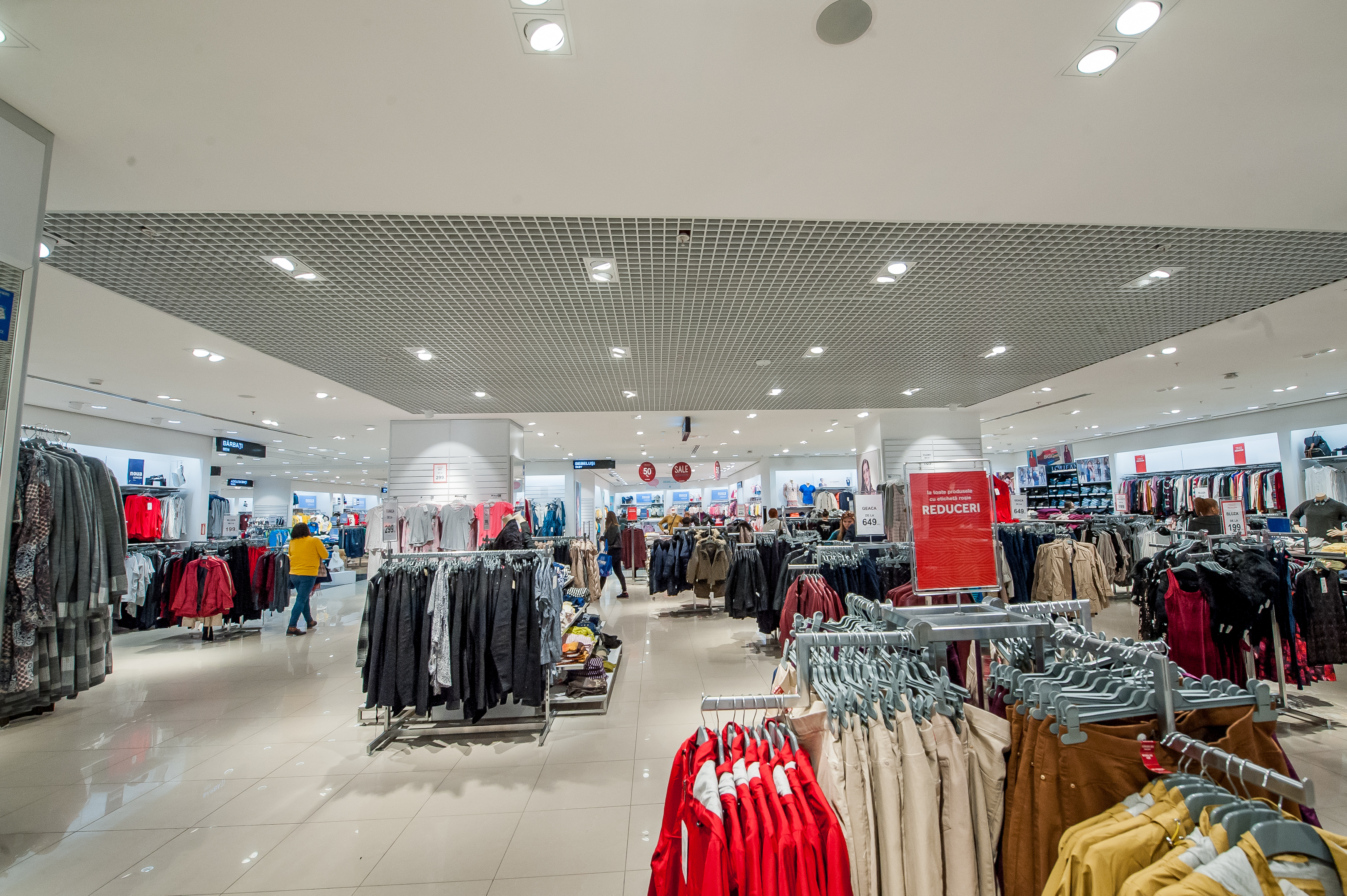 • Design arhitectural - posibilitatea de a combina într-un spațiu (pe același sistem de suspendare) diverse elemente de tavan, prin alternanța casetelor și a grilelor.