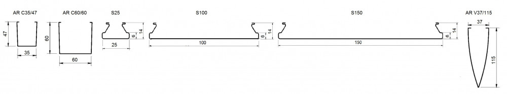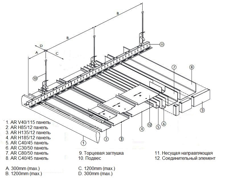 Панели могут поставляться любой длины от 1000 мм до 6000 мм, несущая направляющая (стрингер) имеет стандартную длину 4000 мм.