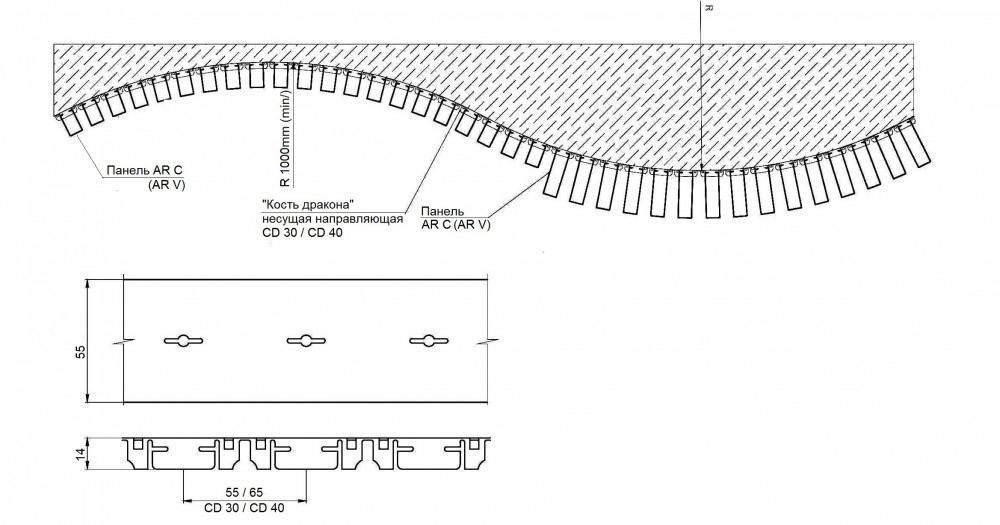 Ключевой особенностью этой системы является неограниченное сочетание различных панелей с различной глубины и ширины панелей в одном потолке.
